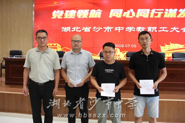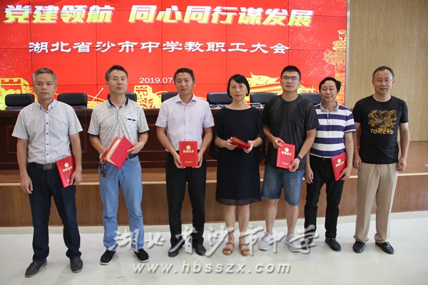 會議第一項,由學校黨委書記、校長熊禮才同志向全體教師頒發下一學年的聘書。新組建的高一至高三三個年級的年長代表老師們接收了學校的聘書。