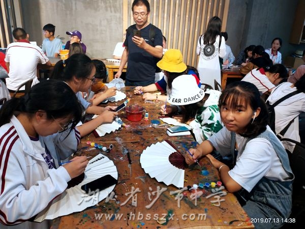13日,奔赴杭州。天公不作美,暴雨如注。在浙江大學,只能車游校園。攻讀研究生的學姐,用溫婉的語言為同學們介紹了浙江大學悠久的歷史、杰出的成就、燦爛的文化、闊大整潔的校區功能分布。下午,在大運河的源頭,同學們參觀了中國刀剪劍博物館、中國傘博物館、中國手工活態展示館,還自制了手工折扇。