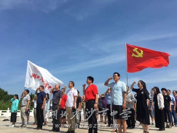 追憶革命艱辛歷程 2019年7月27日,湖北省沙市中學(xué)近百名黨員教師在學(xué)校黨委的率領(lǐng)下,高舉黨旗和校旗,前往監(jiān)利縣周老嘴鎮(zhèn)湘鄂西革命根據(jù)地舊址群,進行了全校黨員的七月主題黨日活動。