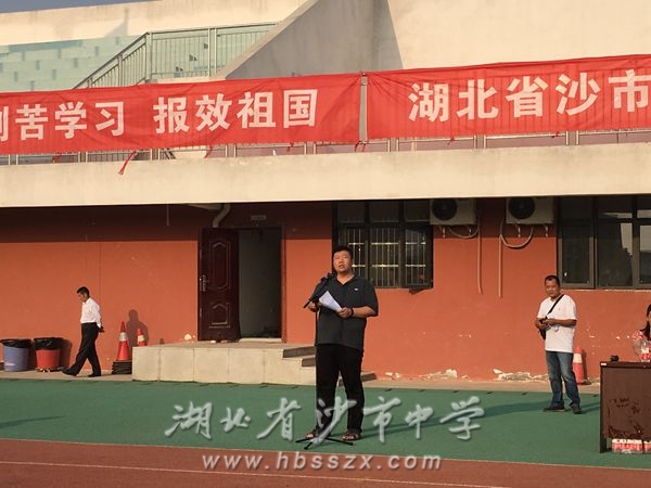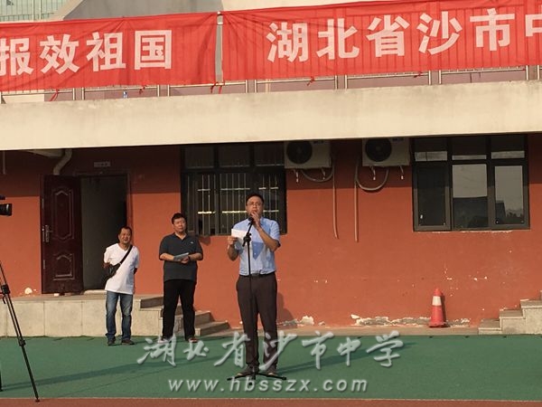 接著,我校黨委委員、副校長徐善慧發表講話。他首先祝賀同學們進入沙市中學,并回顧了我校悠久的辦學歷史和輝煌的辦學成果,尤其重點介紹了我校的“習坎”文化。他鼓勵同學們發揚習坎精神,勇敢地應對軍訓的挑戰,不斷錘煉并提升自我。