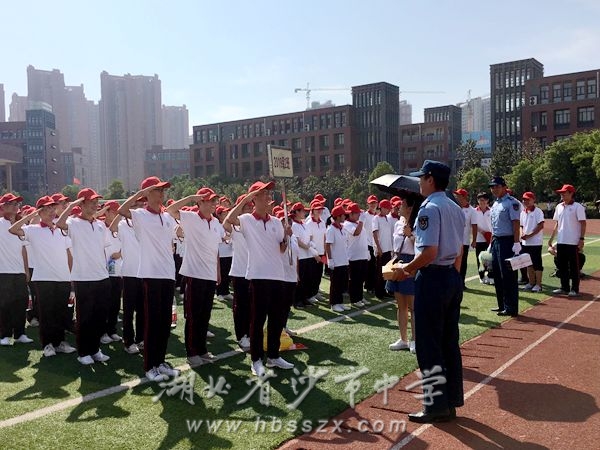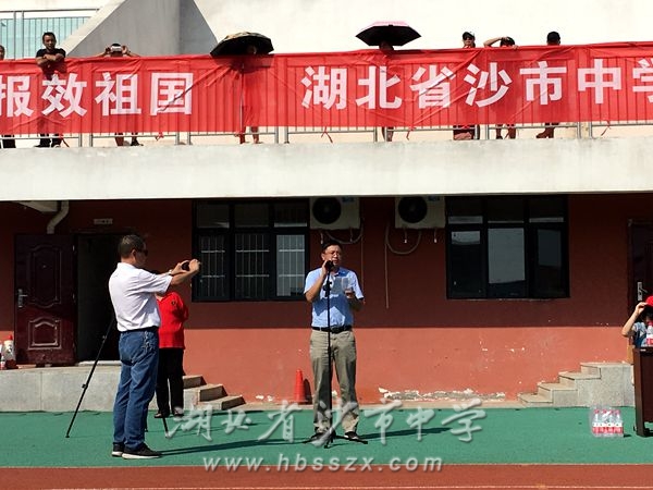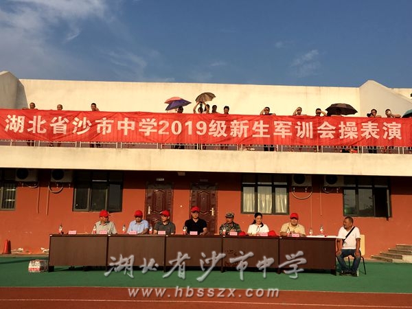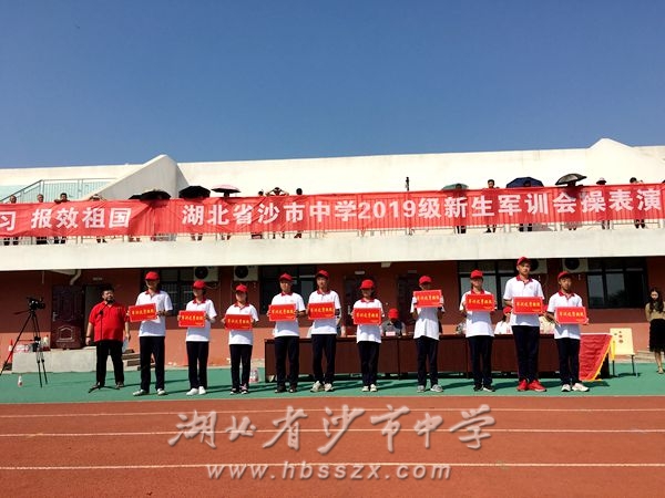 2019年8月30日上午七點半,沙市中學2019級新生軍訓會操表演暨表彰大會在學校操場舉行,沙市中學黨委書記、校長熊禮才出席大會,武警荊州消防支隊官兵、學校其他校級領導、家長委員會代表和新高一師生均參加了大會。