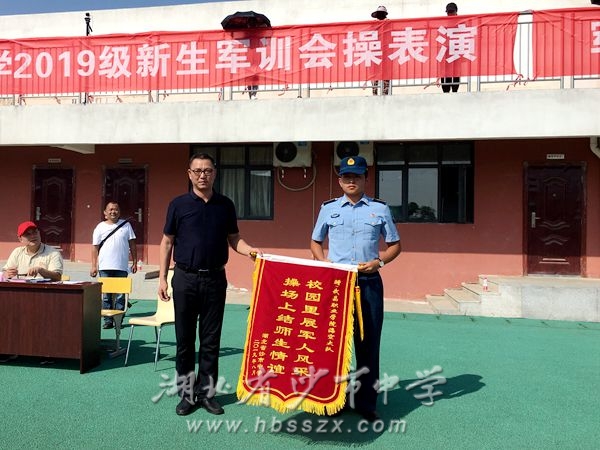 在會操表演結束后,由1901班的周炫杭同學作為學生代表上臺發表軍訓感言,2019級年長吳俊威進行了軍訓小結。隨后,副校長吳本萍等領導宣讀了表彰名單,副校長趙文華、副校長徐善慧、工會主席戴永平以及李響、彭寧文兩位家長代表為獲獎的班級和個人頒發了獎牌。副校長徐善慧上臺致閉訓詞,熊校長代表學校向教官贈送了錦旗。