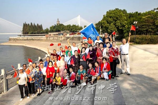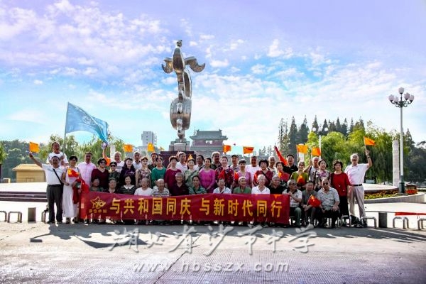 東方欲曉,莫道君行早。9月28日一早,老三屆的班級代表、沙市中學6632班46名同學從祖國四面八方相約荊州凱樂大劇院廣場,人持一面鮮艷的五星紅旗精神抖擻登上旅游大巴。他們一路向北,觀光長江大橋、海子湖大橋、荊州園博園、荊州方特主題公園等沿途16個景點。