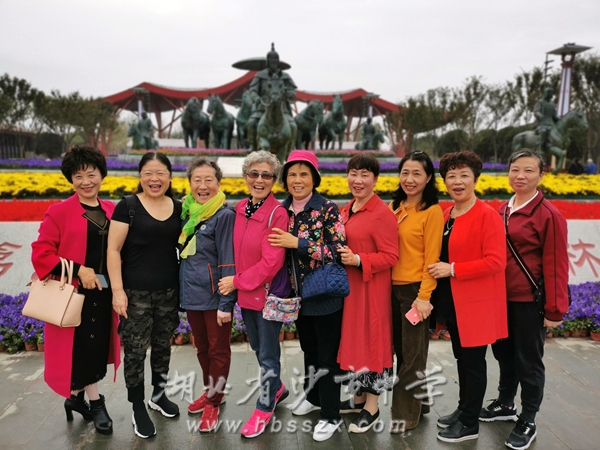 沙市中學的老教職工興致勃勃地游覽了荊州園博園。大家在園內時而駐足觀看,時而和著背景音樂放聲高歌,時而拍照留念。雖是深秋時節,但園內的各種奇花異草依然燦爛綻放,不吝秀色,展現美麗。緩步走來,大家無不為荊楚故地的人文景色、輝煌歷史所嘆服。
