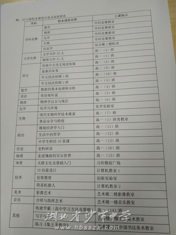 沙市中學(xué)2019級(jí)高一年級(jí)校本課程開課