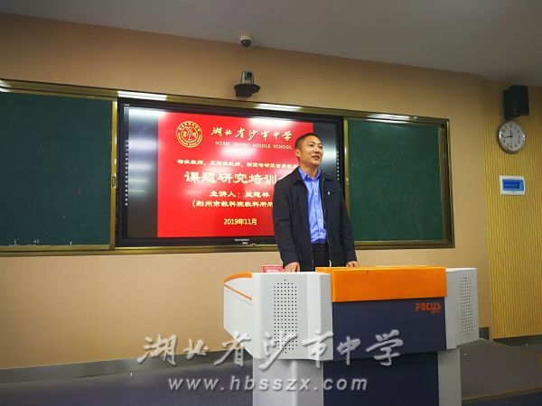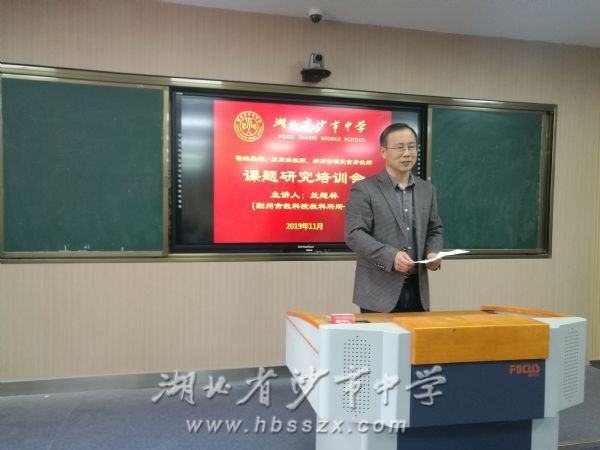 副校長趙文華作總結發言 11月8日上午,荊州市教科院教科所所長蘭想林應邀來我校做名師課題培訓,黨委副書記、特級教師張志禮、副校長趙文華、特級教師吳祥成、正高級教師丁家順,以及校新高考研究首席教師參加了培訓活動。教科處主任唐年新主持此次培訓活動。