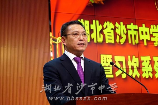 隨后,荊州市教育局黨組書記、局長傅鐵海致辭。他表示,沙市中學是一個有歷史的學校,是一所有精神的學校,是一所有榮耀的學校。沙市中學自強不息,砥礪前行,引領了荊州教育改革發展的潮頭。他衷心希望沙市中學始終牢記立德樹人的根本任務,落實黨的教育方針,堅持德智體美勞五育并舉,為社會主義培養一代又一代的合格接班人和建設者,為繪就“萬里長江,美在荊江”新畫卷貢獻自己的力量。