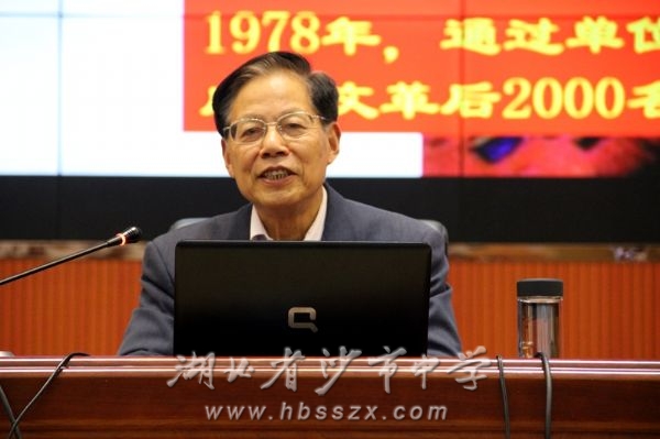 中國工程院院士、沙市中學1960屆校友樊明武院士在雷鳴般的掌聲中走上臺為學弟學妹們熱情寄語。他深情回望了自己的不平凡成長里程,他說:“人生之路千萬條,但無論哪一條都是留給有準備的人,留給能堅持的人,留給迎難而上的人,無論多么遙不可及的夢想,只要你一步一步地走,只要你把自己個人的命運與國家民族的命運緊緊相連,你就能夢想必能成真。”談及母校對自己的影響,他說:“母校賜予我們的,除了文化知識,更有‘上善若水,自強不息’的精神氣,他讓我們面對人生的任何狀況時,都能充滿激情地去挑戰!”