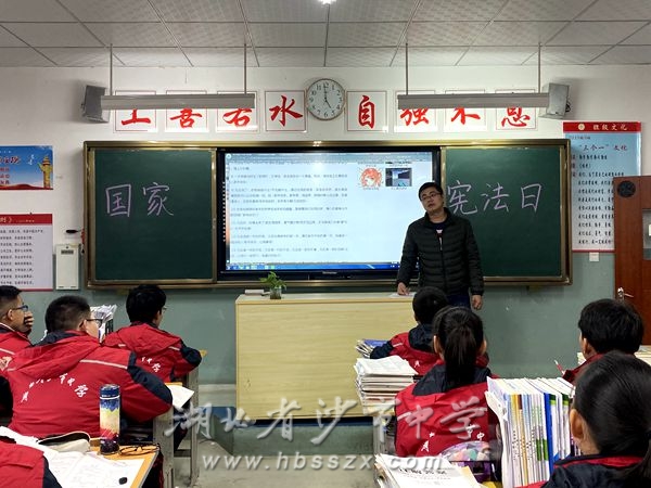 每年的12月4日是國(guó)家憲法日。隨著我國(guó)第六個(gè)國(guó)家憲法日的到來(lái),為加強(qiáng)法制教育,培養(yǎng)學(xué)習(xí)憲法、遵從憲法的精神,我校組織全校各班于2019年12月4日下午第四節(jié)班會(huì)課,召開(kāi)了“國(guó)家憲法日”主題班會(huì)活動(dòng)。