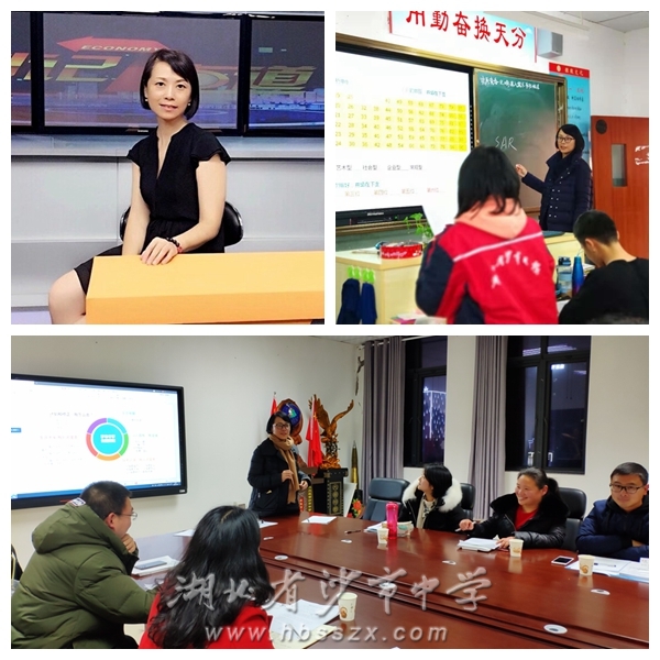 上圖為李艷老師與學(xué)生在一起;下左圖為李艷老師在荊州市名師工作室主持人高級研修活動中與授課教師互動;下右圖為李艷名師工作室召開首次成員工作會