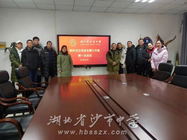 荊州市江來波名師工作室“全家福” 1月9日上午,荊州市江來波名師工作室召開首次工作會議,黨委副書記、紀委書記張志禮,副校長趙文華,教科處主任唐年新,教務處副主任孫石毅以及全體工作室成員參加了本次會議。江來波老師主持本次會議。