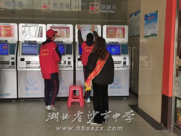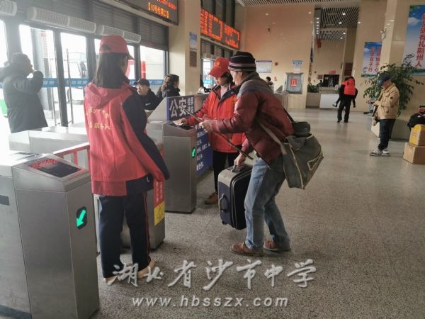 所有志愿服務隊員穿著統一的志愿服務馬甲,佩戴著有湖北省沙市中學標識的小紅帽,在荊州火車站的客運樞紐站,為往來旅客提供幫助。有的志愿者在購票處,向旅客指明售票廳的具體位置,引導旅客有序排隊購票,協助旅客使用自助購(取)票機;有的志愿者在進站口,提醒旅客準備好身份證件和車票,有序排隊通過檢票口檢票;有的志愿者在安檢處,協助工作人員組織旅客有序通過安全檢查,幫助有需要的乘客將行李放入安檢機,在意外狀況發生時及時通知車站工作人員;有的志愿者在檢票口,勸導乘客排隊檢票進站,協助檢票員檢票……奉獻與快樂同在,你我與文明同行,沙市中學的志愿者們用自己的熱情服務和溫暖笑容為荊州市火車站往來的旅客驅散冬天的嚴寒。
