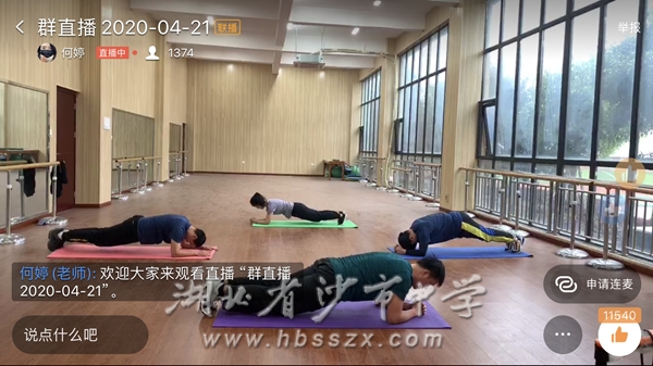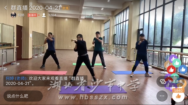 4月21日下午4:50我校推出第一節體育直播課,實現高一高二年級全體學生同步在線觀看鍛煉。在居家的條件下,我校體育中心教師制定了詳細的鍛煉計劃,并由體育組四名老師共同直播教學。