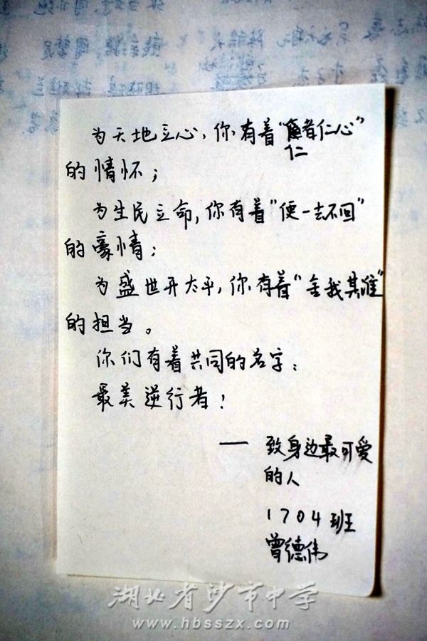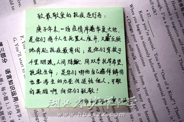 同學們紛紛把自己最真摯的敬意獻給最美逆行者。“等到黑夜翻面之后會是新的白晝。打破裂縫得以窺見金光,有陽光照射就是希望。惟愿山河無恙,人間皆安!”高三(16)班孟歆雯同學寫道。