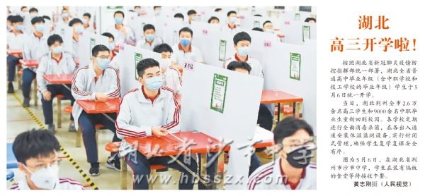 湖北高三開學啦! 按照湖北省新冠肺炎疫情防控指揮部統一部署,湖北全省普通高中畢業年級(含中職學校和技工學校的畢業年級)學生于5月6日統一開學。