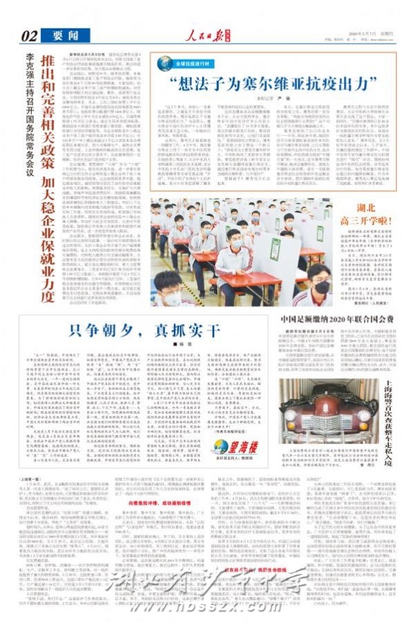 5月6日,沙市中學高三年級學生按上級要求正式復學。復學后學生在校生活的鏡頭在2020年5月7日《人民日報》(海外版)第2版登出。