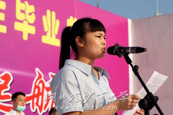 高三(5)班項子恒同學的母親作為家長代表發表講話。她感激為孩子們開闊視野、增長才干、豐富閱歷、陶冶情操提供了豐厚的教育沃土的沙市中學全體老師;囑托同學們牢記感恩,心存敬畏,以夢為馬,不負韶華,亮劍高考,不留遺憾。