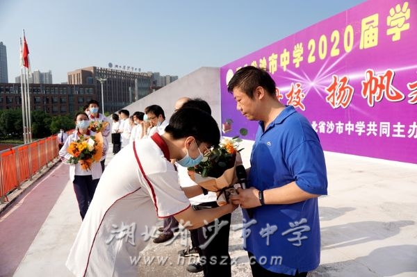 2020年6月25日,農歷端午節,碧空如洗,晴明萬里。沙市中學2020屆學生畢業典禮在學校體育場隆重舉行。出席本次畢業典禮的校領導有學校全體校級領導,高三教師、學生和部分家長代表。