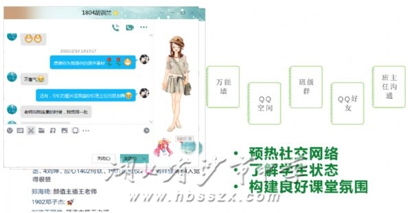王里老師從心理學專業的角度,分析了線上教學中師生的心態,即學生有對假期學習的抵觸、反感軟件控制自己、看熱鬧看開心等心態,老師對線上工具的不熟悉,有唱獨角戲的在線教學是否能達成教學效果等懷疑心態。結合自己的線上教學的體會,她認為面對線上教學這一新事物,老師要做到接納自己,以平常心應對,最關鍵的是要提升自我專業能力和學科素養,擁抱信息技術的挑戰,做學生的良師益友。