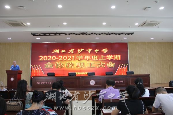 張志禮同志部署創(chuàng)建工作 8月26日上午,沙市中學(xué)在綜合樓二樓會(huì)議室召開2020-2021學(xué)年度上學(xué)期首次全體教職工大會(huì)。會(huì)上,校黨委副書記、紀(jì)委書記張志禮對(duì)我?!叭珖拿餍@”創(chuàng)建工作的重點(diǎn)任務(wù)進(jìn)行了解讀,并作出具體部署。
