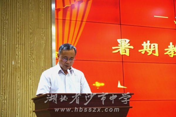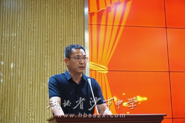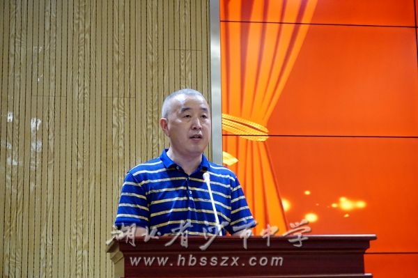 沙市中學黨委書記、校長熊禮才致辭。他介紹了本次受表彰的人員,有堅守講壇、矢志如初的教壇精英,有整天和學生摸爬滾打在一起的班主任,有與數據為伴、與維修為伍的后勤人員,還有疫情中用于沖鋒的先進個人……他著重指出其中的兩類典型,一類是抗疫先進個人,一類是新教材培訓心得體會獲獎者。前者在2020年與疫情無煙戰場戰斗中,服從安排,戮力同心,筑起了從校門到教室、從食堂到宿舍、從課堂到操場的一道道防線,確保了高三年級順利完成高考及高一高二二十天的復學任務;后者在新高考新教材的競技場上角逐,研究新課標,決勝新高考。熊校長強調,教師的生命史就是一部現代人的學習和成長史,教師的學習力決定著教師的素質競爭力,學校團隊的學習力決定著學校的創新力,也決定著學校培養有學習力和創新力學生的能力和水平。他鼓勵老師們在豐富的教學實踐中鉆研教育教學課題,從日常的教學行為中思考提煉,最終成為擁有自己獨特的教學風格和教學思想的教師。