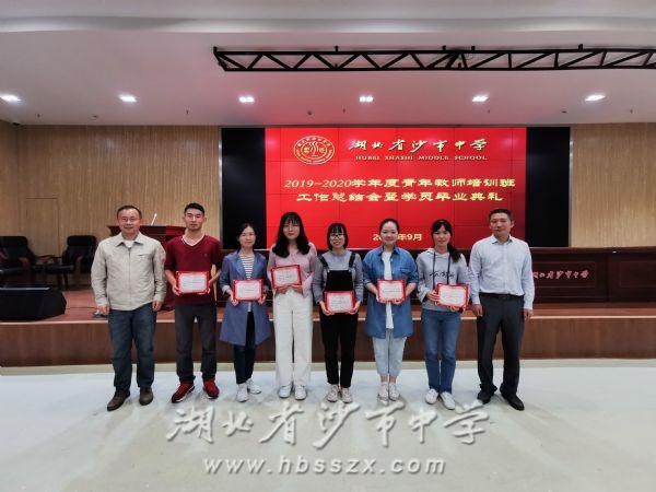 青年教師培訓班全體成員參加畢業典禮 9月28日下午,沙市中學舉行2019—2020學年青年教師培訓班畢業典禮,副校長趙文華出席,教科處主任唐年新主持典禮。