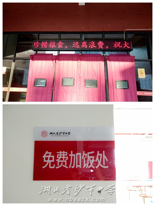 學校積極加強宣傳教育,在食堂門外電子顯示屏、專題宣傳欄以及入口處設置了杜絕浪費的相關宣傳標識,引導廣大師生文明就餐,培養節約習慣。學生窗口推出半份菜,學生可以選擇一份或者半份菜,避免“舌尖上的浪費”。食堂工作人員還根據男女生餐飲特點,實行適當少打飯量,設置“免費加飯處”,方便學生就餐。在教師食堂中,采取自助餐的形式進行就餐,做到適量取餐,厲行節約。