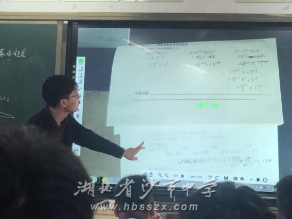 馮韻老師的數學課堂 數學賽課的課題是人教版必修一新教材上的內容《指數函數圖象和性質》。馮老師以富有哲理的指數式引入,然后通過教學活動,讓學生自主畫指數函數圖象,然后觀察指數函數圖象特征,歸納指數函數函數性質。這節課以學生為主體,充分發揮學生的主觀能動性,讓學生去發現問題、探究問題、解決問題,學生不但掌握了知識,更學會了探究函數的方法。