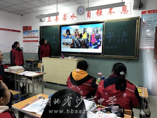 活動中,各班班主任首先組織同學們學習《中華人民共和國憲法》,了解《中華人民共和國憲法》的地位與作用、目的意義以及國家根本制度和根本任務等內容;接著,通過理論與真實案例相結合的方式,運用鮮活的案例和生動的語言為同學們介紹了知法、懂法的重要性,讓學生樹立了基本的法制觀念,強化了行為舉止必須守住基本法律底線的意識。此外,部分班級還就如何防止校園欺凌、意外傷害、抵制不良風氣、提高自我防范意識等展開了熱烈的討論,使學生進一步懂得從自身做起,從小事做起珍惜校園美好時光遠離罪惡,遠離傷害,真正做一名學法、懂法、守法、用法的好學生。