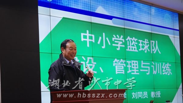 原武漢理工大學教授劉同員 第二場由武漢理工大學劉同員教授對中小學籃球隊的建設、管理和訓練展開講解。劉教授首先介紹了目前中國籃球的發展情況,同時分析了學校成立籃球隊的意義,校籃球隊對學校,對學生存在多方面影響,校籃球隊具體的建設和管理方案,最后對校籃球隊運動員的體能訓練模式做了詳細介紹。