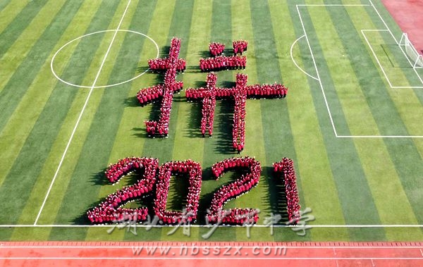 2020年12月30日上午,沙市中學高一年級800余名學生齊聚操場,在草坪上列隊擺出一個大大的行書“拼”字,以此迎接2021年的到來。