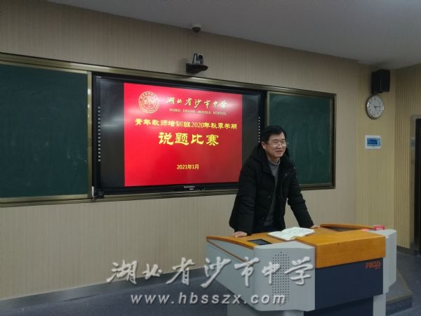 學術委員會成員和參賽教師 為更好提升新高考背景下教學評價的有效性,探索“高效課堂”,培育學生的核心素養、落實立德樹人的根本任務,促進青年教師加強對新課改試題的研究,1月4日下午,我校開展青年教師培訓班2020年秋季學期說題比賽,學術委員會成員和全體青年教師參加,教科處主任唐年新主持了說題比賽活動。