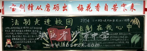 三、各班以“法治進校園”為主題開展辦黑板報活動。同學們集思廣益、勇于創新,將法治教育與校園文化相結合,進一步加強了法治教育的宣傳力度。