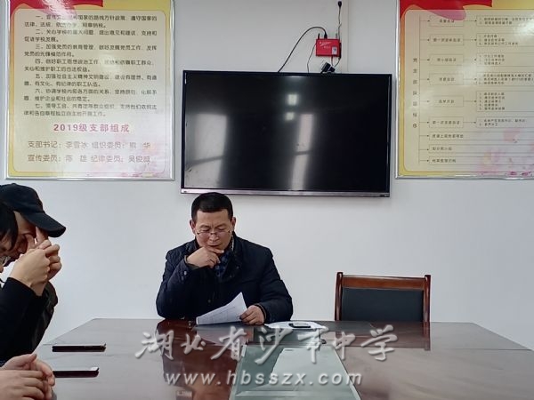 2019級(jí)黨支部書記李雪冰結(jié)合學(xué)習(xí)文件給支部黨員上黨課,進(jìn)一步深入解讀了文件精神。李雪冰同志指出,對(duì)于學(xué)校來(lái)說(shuō),能夠平穩(wěn)有序地進(jìn)行教育教學(xué)管理,就是最大的安全生產(chǎn)。他結(jié)合我校實(shí)際情況,對(duì)支部黨員老師的教學(xué)水平、課堂管理能力和個(gè)人素養(yǎng)提出了更高的要求,并強(qiáng)調(diào)廣大黨員同志應(yīng)積極支持學(xué)校對(duì)手機(jī)的管控,為學(xué)校的管理水平和教學(xué)質(zhì)量的提升貢獻(xiàn)力量。