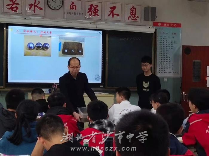 余小路老師的物理課堂 物理學(xué)科賽課的課題是“動能和動能定理”。能量對于學(xué)生來說比較抽象,在課堂中,余小路老師通過模擬高空拋物,用鐵球從砸到手上產(chǎn)生痛感、重物落地砸碎核桃,巧妙化抽象為形象,讓學(xué)生直觀感受到了動能的大小。在動能定理的應(yīng)用環(huán)節(jié),學(xué)生對打夯的情景比較陌生,余老師自制了打夯器材,現(xiàn)場演示打夯,將夯的運動情景深深的烙在學(xué)生的腦海里,整堂課學(xué)生參與度非常高,充分體現(xiàn)了老師主導(dǎo)、學(xué)生主體的作用,學(xué)生不僅能從生活中提煉物理知識,而且能將物理知識用于生活。余小路老師從高空拋物出發(fā),通過實驗讓學(xué)生直觀感受了動能的大小,自制打夯器材讓學(xué)生體驗了生活中的物理,激發(fā)了學(xué)生的探究熱情,也獲得評委老師的一致好評。