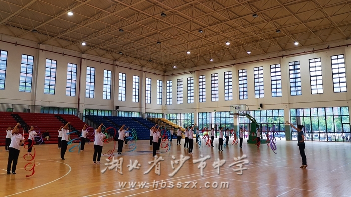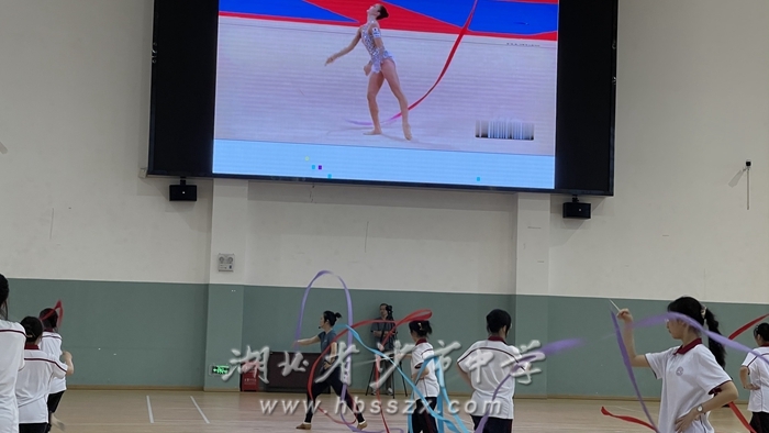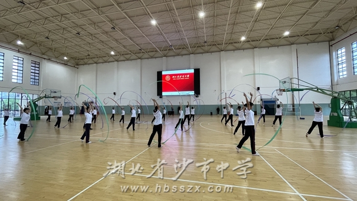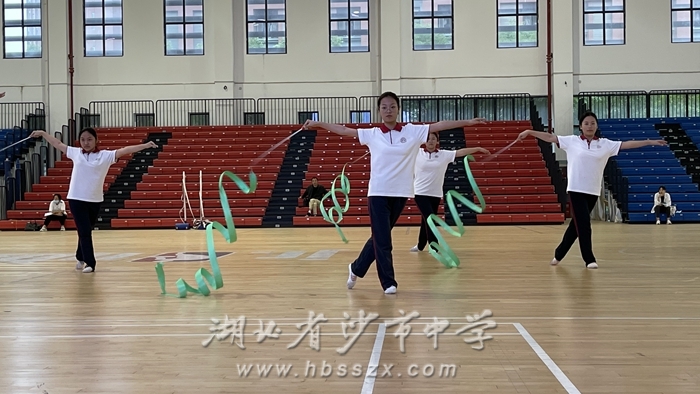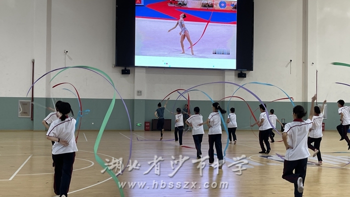 全體參會人員一起觀看了江來波名師工作室成員沙市中學體育教師張亞老師執教的《藝術體操-彩帶》一課。