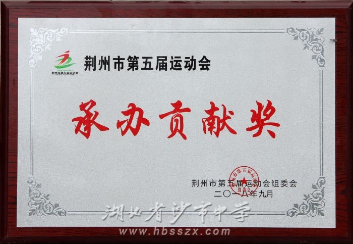 2018年09月獲荊州市第五屆運(yùn)動會承辦貢獻(xiàn)獎