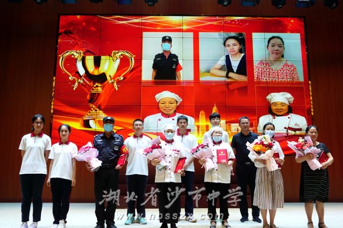 桃李芬芳,恩情難忘。畢業典禮上舉行了最美后勤員工頒獎儀式。熊禮才校長與學生會主席一起為“最美保安”李正洪,“最美掌勺阿姨” 姚明霞、鄭永芳,“最美宿管阿姨” 楊麗華、鄒先紅頒獎。他們雖然崗位不同,但都有共同的可敬之處,就是愛工作、愛學校、愛師生。他們把服務當成神圣的使命,微笑對人,用心奉獻,詮釋了沙市中學后勤工作者應有的工作態度和品質。全體高三師生用熱烈的掌聲感謝他們三年來最暖心的服務。