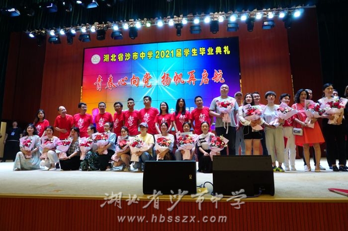 2018級學生轉眼變成沙市中學2021屆畢業生,即將奔赴下一個起點,高三班主任將他們的期望與祝福,通過詩朗誦一一叮囑。各班學生代表來到臺上,將一束束鮮花,獻給每位朝夕陪伴的班主任,感謝他們的奉獻、呵護與陪伴。