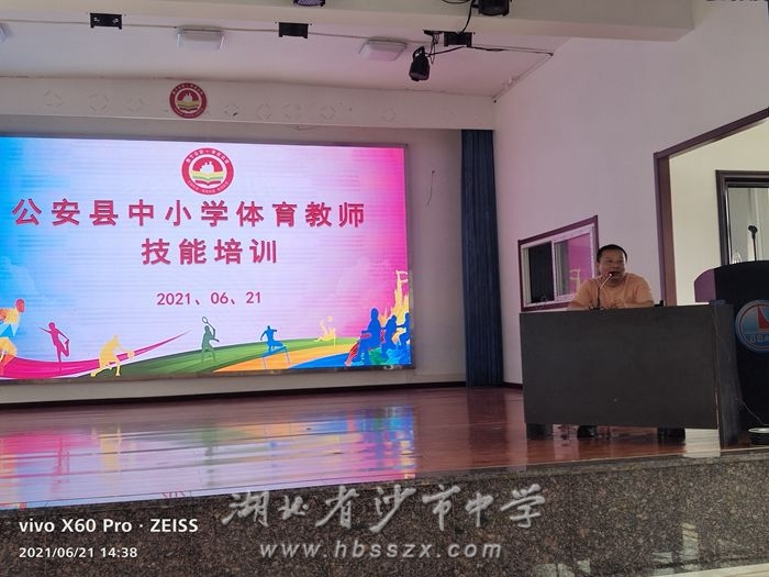 2021年6月21至26日,荊州市江來波名師工作室主持人、我校體育特級教師江來波,帶領工作室成員沙市中學教師何婷、張亞,公安縣體育學會理事長彭曉飛到公安縣學校體育教師技能提升培訓中開展“送教下鄉”活動。