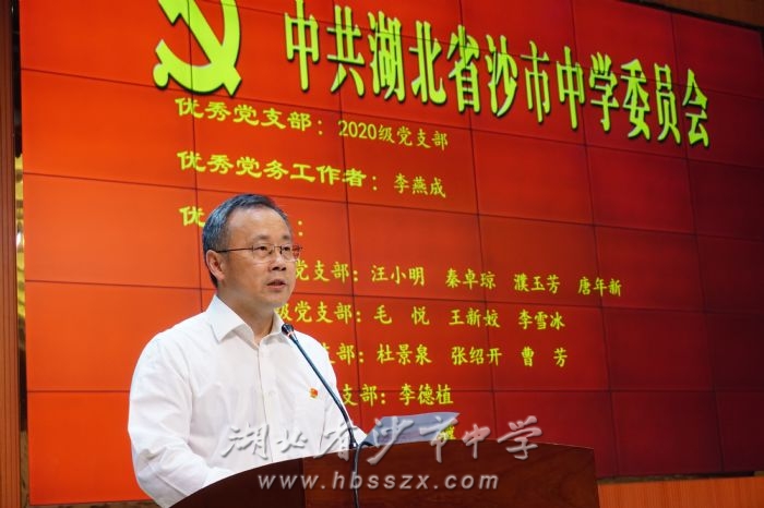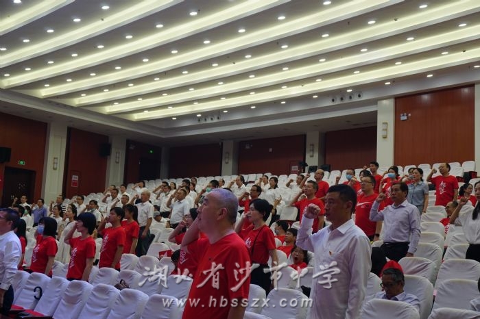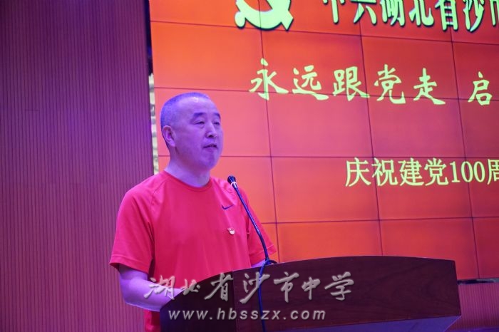 為隆重慶祝中國共產黨建黨100周年,重溫黨的光輝歷程,歌頌黨的偉大成就,繼承和發揚黨的優良革命傳統,引導全校教師傳承愛黨愛國愛社會主義的紅色基因,凝聚起為實現中華民族偉大復興而努力奮斗的強大正能量,6月30日,湖北省沙市中學在藝術報告廳召開了慶祝建黨100周年暨“七一”表彰大會。會議由校黨委副書記、紀委書記張志禮主持,全體教師參會。