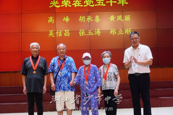 全體奏唱國歌 薪火相傳百年路,賡續奮斗譜新篇。校黨委書記、校長熊禮才為我校“光榮在黨50年”老黨員高峰、胡承喜、黃鳳麗、吳信昌、張玉濤、鄭立剛同志頒發紀念章。跨越半個世紀的光榮,都濃縮在沉甸甸的紀念章里,他們的黨員精神,是最生動、最鮮活、最可敬的“教科書”,為習坎人留下珍貴的精神食糧。