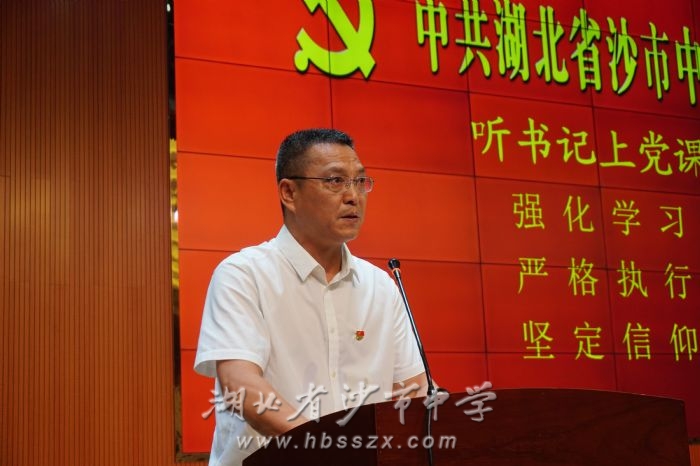 預備黨員周敏宣誓,黨辦主任李昌坤領誓 隨后,黨委書記、校長熊禮才同志講話并上黨課。熊禮才同志結合我校黨史教育系列活動開展情況,闡述了黨史學習的偉大意義。他強調,我們要從黨的歷史中汲取智慧和力量,做到學史明理、學史增信、學史崇德、學史力行,把學習教育成果轉化為推進教育工作的動力和成效,以優異成績慶祝中國共產黨百年華誕。