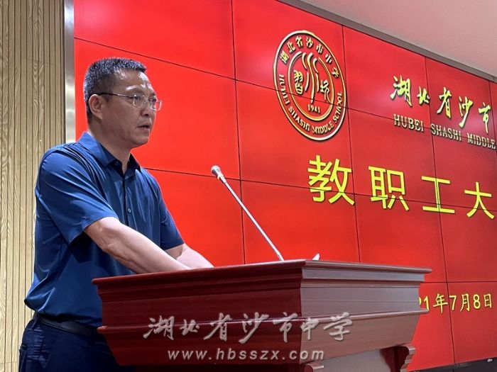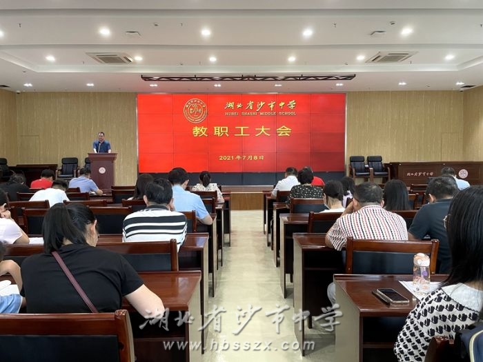 教職工大會現場 7月8日下午3時,沙市中學220余名教職員工齊聚綜合樓二樓會議室,召開2021年春季學期期末教職工大會。會議由黨委副書記、紀委書記張志禮主持。
