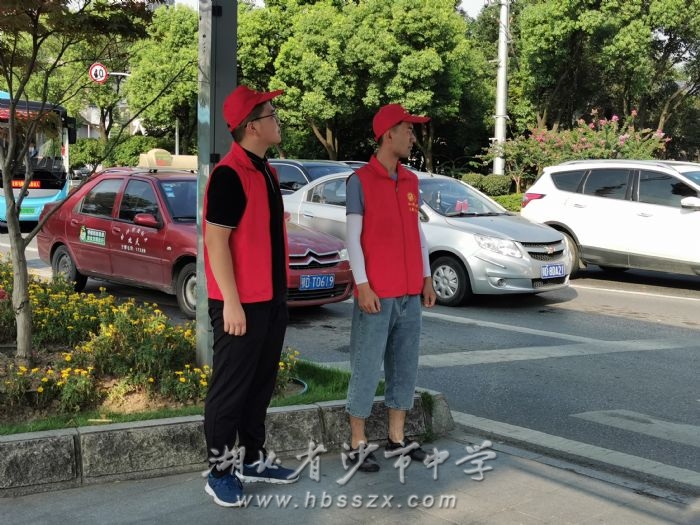 上午八點,八名志愿者身穿小馬甲、頭戴小紅帽,來到江津路十字路口,在執勤民警的帶領下走上街頭。烈日炎炎,持續升溫,但沙市中學交通志愿者依然堅守在十字路口,協助民警維護交通秩序,對行人橫穿馬路,以及自行車、電動車闖紅燈、逆行和駕駛人不禮讓斑馬線行人等不文明行為進行耐心的勸導,成為一道靚麗的風景線。