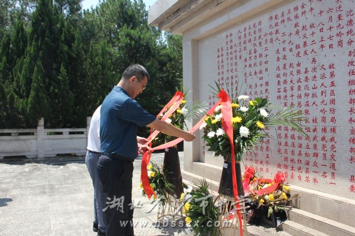 頭頂烈日,邁進(jìn)青山,沙市中學(xué)一行來到九嶺崗起義烈士陵園,瞻仰莊嚴(yán)肅穆的英雄紀(jì)念碑。碑體正面是徐向前元帥夫人黃杰題寫的碑名,背面是徐向前元帥的親筆題詞“緬懷英雄業(yè)跡,發(fā)揚(yáng)革命精神”。革命先烈英勇戰(zhàn)斗的壁畫,訴說著那段拋頭顱灑熱血的崢嶸歲月,記錄著革命烈士的光榮事跡。