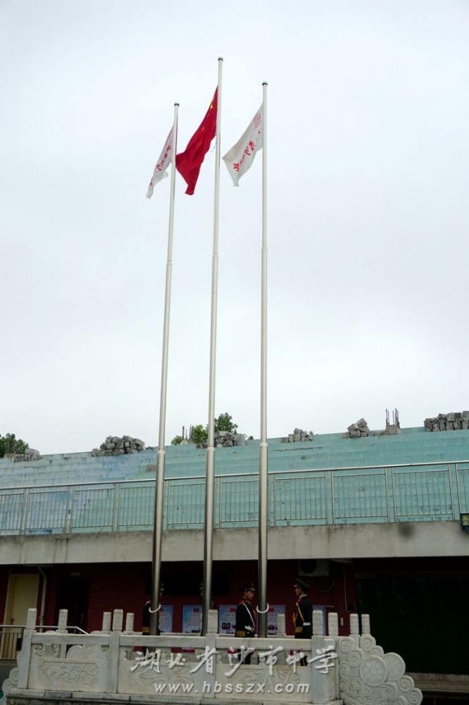 升國旗校旗,奏唱國歌和校歌。國旗隊員們身姿挺拔,全體師生心懷敬仰,行注目禮。