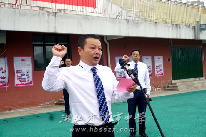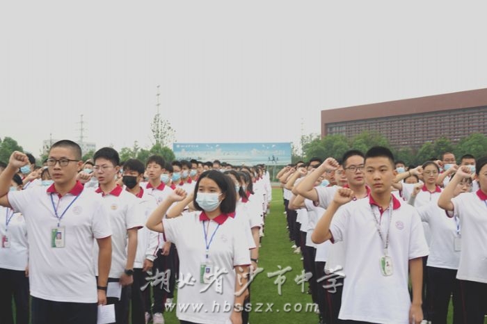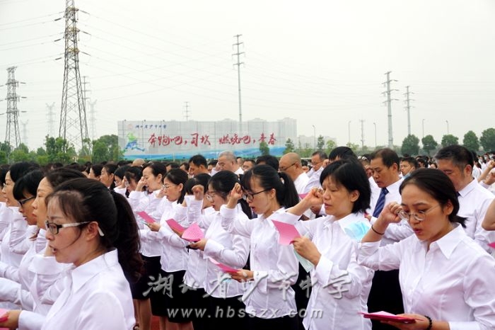 特級教師江來波帶領全體教師宣誓,教師們高舉右拳,“我志愿成為人民教師,忠誠人民教育事業,貫徹國家教育方針,遵守新時代教師職業行為準則,全面實施素質教育。平等待人,為人師表;依法執教、教書育人;勤勉敬業,嚴謹治學;團結協作,樂于奉獻;播種希望,引領未來。做學生的良師益友,鑄教師高尚人格。為中華民族偉大復興,為人類社會文明進步,我愿獻出全部智慧與力量!”錚錚誓言,是沙市中學教師們對教育事業的鄭重承諾。