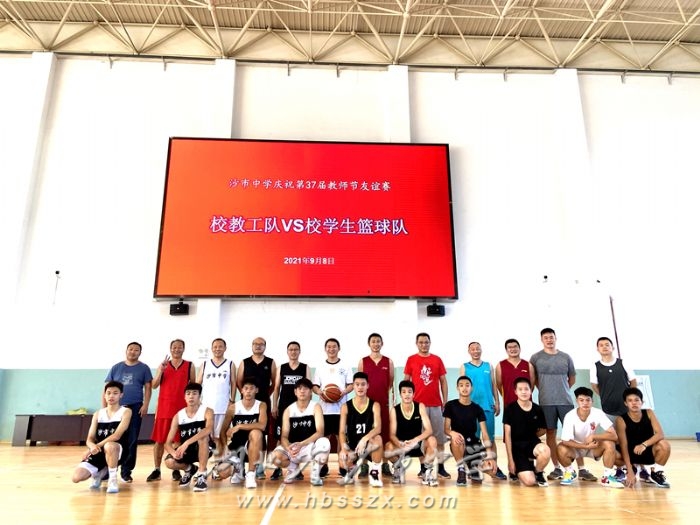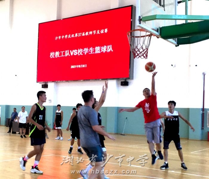 為慶祝第37個教師節,落實學校新學期五項管理中的體質健康管理,9月8日,沙市中學教工籃球隊與學生籃球隊在學校體育館籃球場舉行了一場精彩的籃球友誼賽。