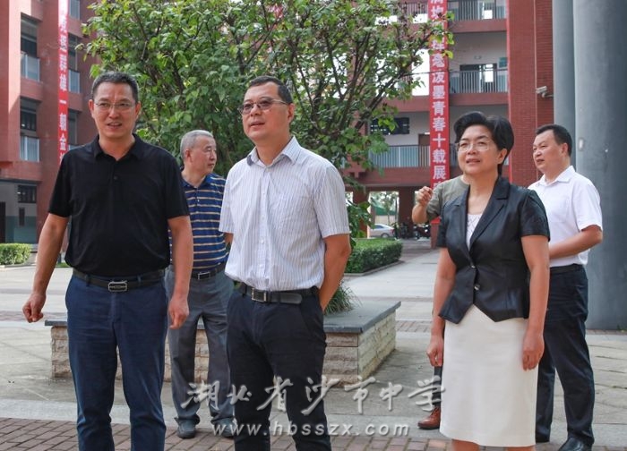 9時15分,劉輝文、劉輝萍一行抵達沙市中學東門,下車后,劉輝文、劉輝萍與在此迎接的沙市中學黨委書記、校長熊禮才等校領導一一握手,并向熊校長詢問學校的師生人數、校園規模等基本情況。兩位市委領導邊聽邊感慨,沙市中學環境優美,軟硬件設施齊全,為國家培養了五名院士,可以說是荊州教育的亮麗名片。